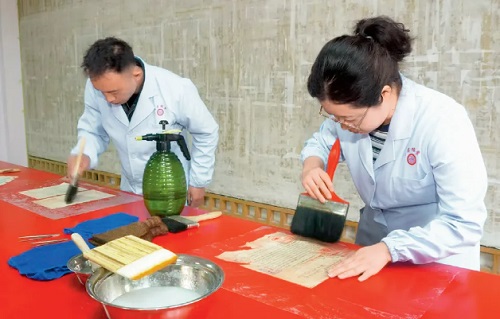 牟雅娜与同事裱糊破损档案