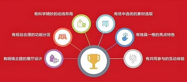 2、以党建展厅为载体,集中呈现本单位党建工作亮点特色、所获荣誉、先进人物、品牌故事等,宣传本单位党建成绩,为参访接待、评优评先提供红色载体。