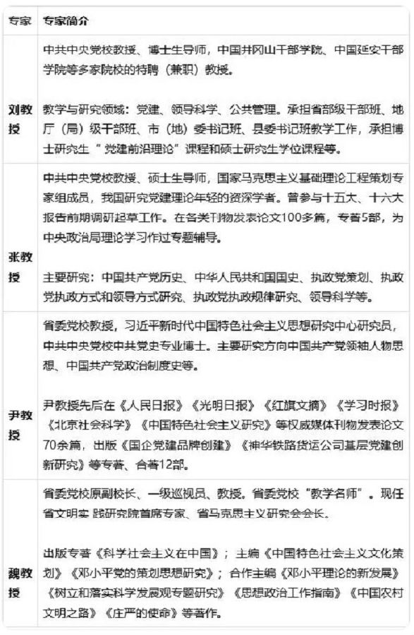 党建展厅内容需要与时俱进,需要与上级指示精神高度一致,需要与党的历史高度吻合,因此需要邀请高校、党校、科研院所等党建专家作为专业顾问,为党建展厅提供科学的 理论支撑,为策划质量严格把关。部分专家顾问如下: