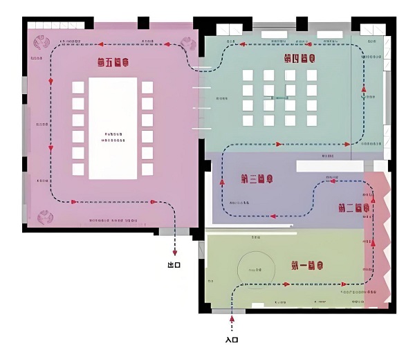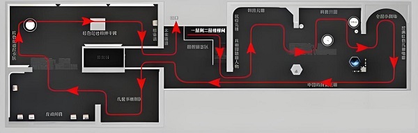 物理动线是指提前规划参访者在党建展厅空间中的行动路线,动线设计是空间设计的核心之一,需要提前规划清晰,否则将会导致参访混乱等情况;